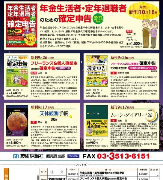 『年金生活者・定年退職者のための確定申告 令和8年3月16日締切分』ほか季節商材