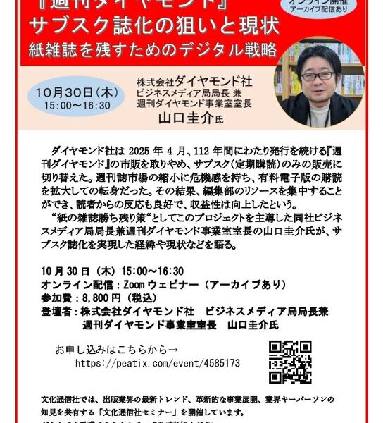 【文化通信社セミナー】 『週刊ダイヤモンド』サブスク誌化の狙いと現状