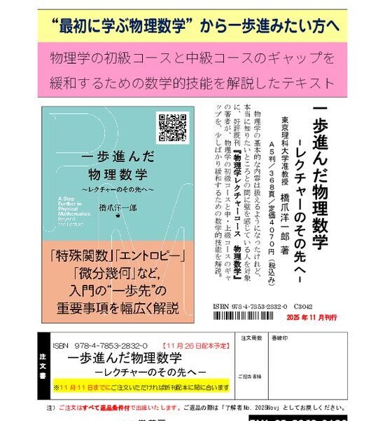 物理学を系統的に勉強し始める際に、発展的な内容を学習する段階で用いられる数学的技能が、“最初に学ぶ物理数学”の範囲だけでは賄いきれず、「急激に難しくなった」とか「知らない数学が多すぎる」と感じる方も少なくないようです。