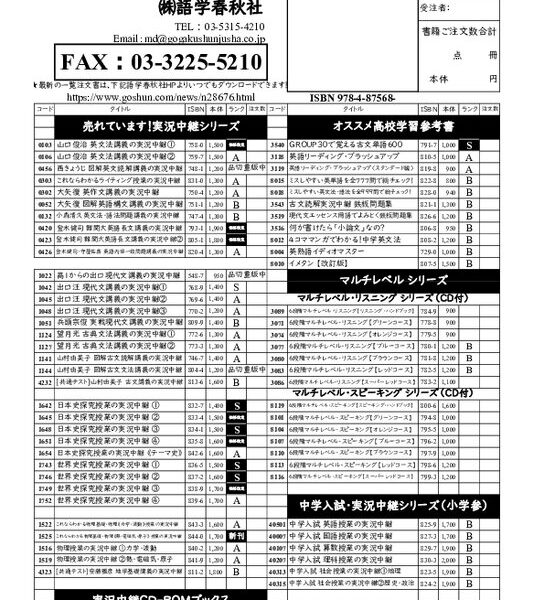 売れ筋のチェック、欠本補充にご利用ください。