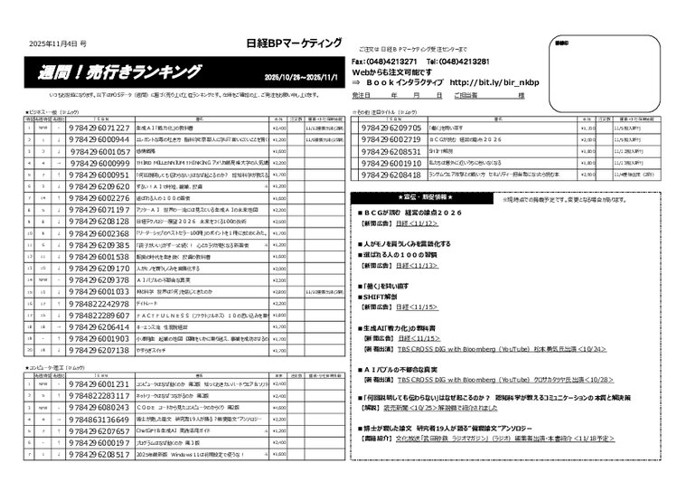 【日経BPマーケティング】週刊!売行きランキング(日経BP)