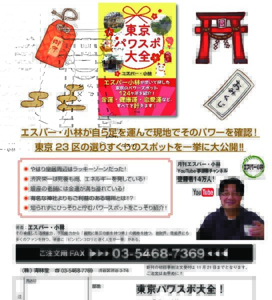 結果を出す霊能者エスパー・小林が自ら足を運んでそのパワーを確認した東京23区内のパワースポットを一挙に公開!