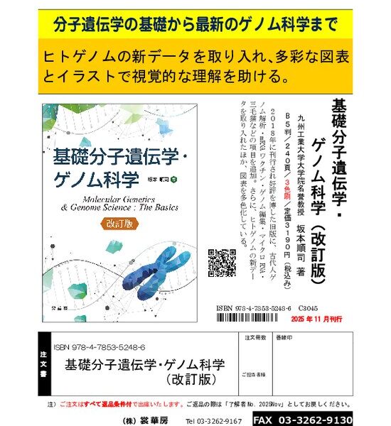 以上のような本書の方針は広く好評を博し、改訂版を出す運びとなった。旧版刊行後も、本書がカバーする分野は広く注目され、例えばノーベル化学賞や生理学医学賞でも様々な業績が授賞対象になった。そこで2025年の改訂では、古代人類ゲノム解析・mRNAワクチン・ゲノム編集・マイクロRNA・三毛猫などの項目に加筆した。