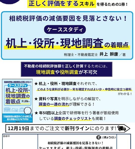 つまり、机上・役所・現地で不動産を多角的に調査し、正しく評価をするスキルが税理士には必須となり、それらを解決するために本書を発刊いたしました。