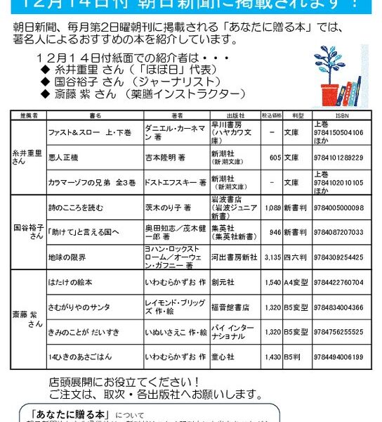 12月14日付掲載「あなたに贈る本」