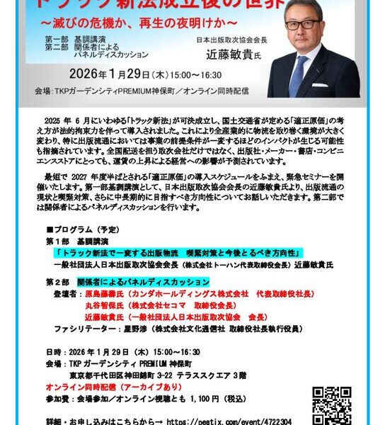 近藤敏貴氏(一般社団法人日本出版取次協会 会長)