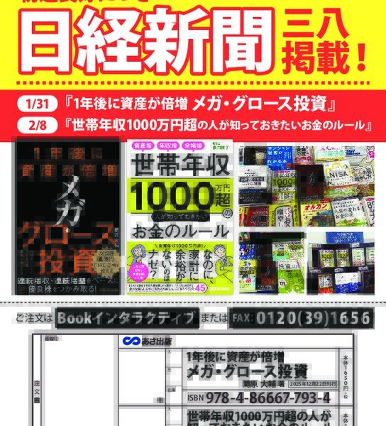 「1年後に資産が倍増メガ・グロース投資」「世帯年収1000万円超の人が知っておきたいお金のルール」