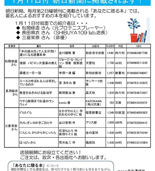 【文化通信社】1月11日付 朝日新聞に掲載されます!