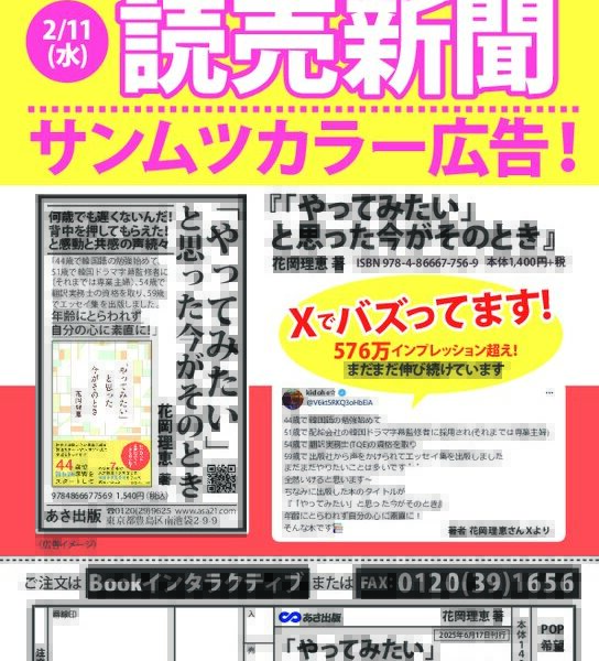 【あさ出版】(エッセイ)読売新聞サンムツカラー広告 2/11