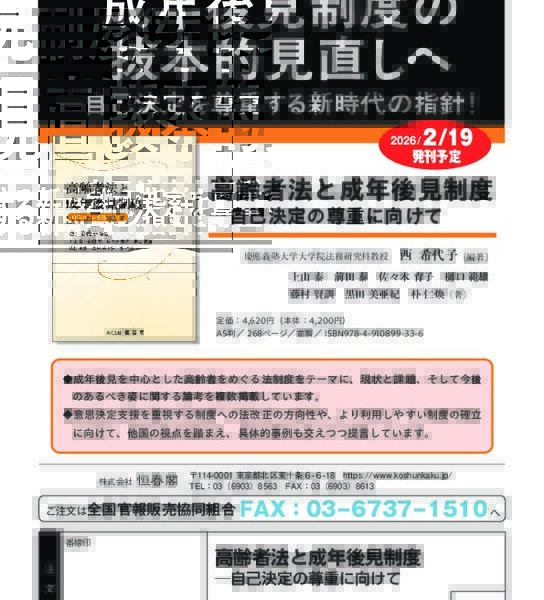 ◆成年後見を中心とした高齢者をめぐる法制度をテーマに、現状と課題、そして今後のあるべき姿に関する論考を複数掲載しています。