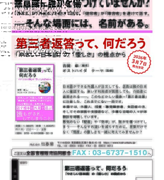 第三者返答って、何だろう 「やさしい日本語」の「優しさ」の視点から