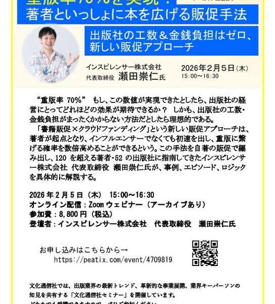 文化通信社では、出版業界の最新トレンド、革新的な事業展開、業界キーパーソンの知見を共有する「文化通信社セミナー」を開催しています。どなたでも受講できますので、ぜひご検討ください。