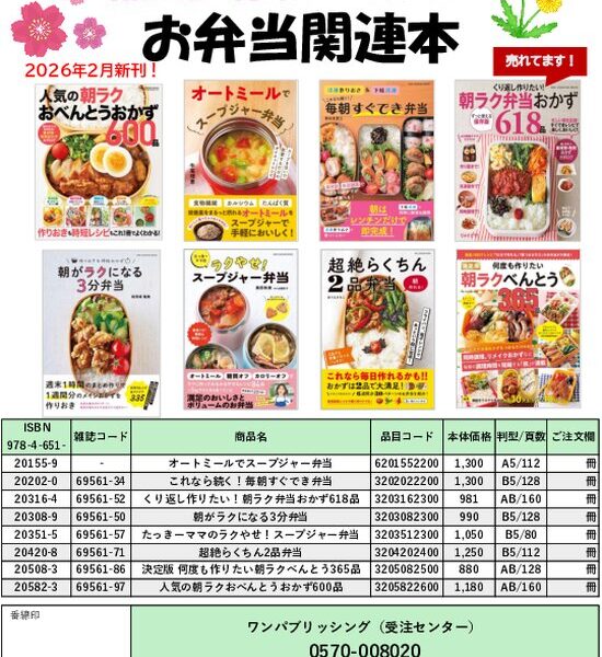 【ワン・パブリッシング】新生活・行楽シーズンに!お弁当関連本のご案内