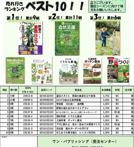 【ワン・パブリッシング】園芸書売行きランキングベスト10