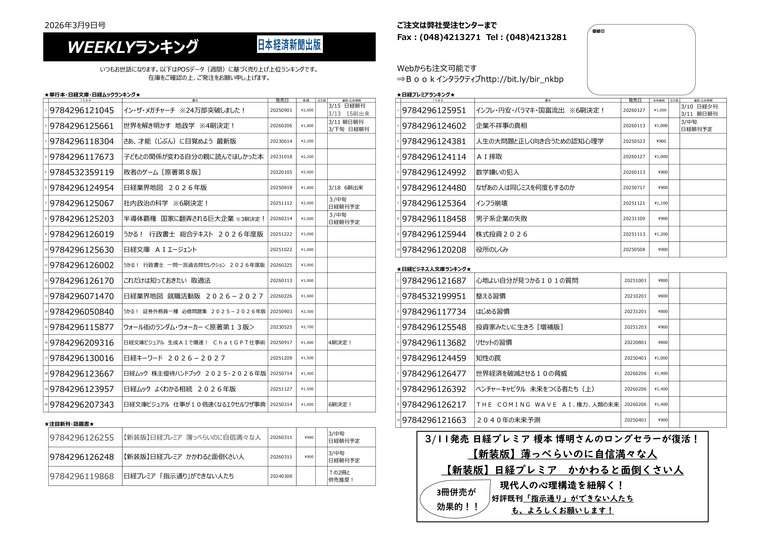 ニュースサイト「BookLink」で公開している注文書・POP
