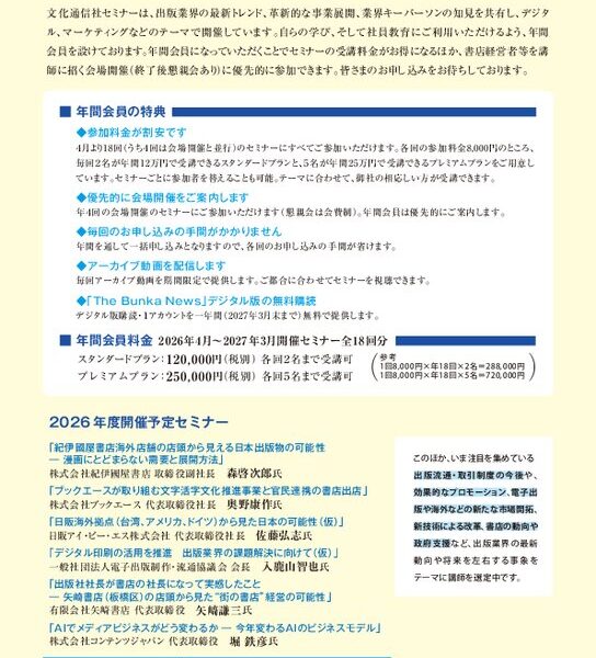 【文化通信社セミナー】2026年度年間会員受付中!
