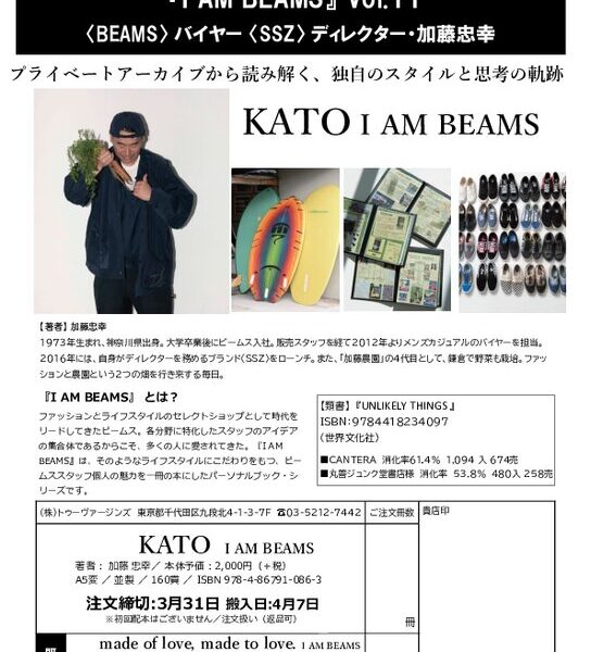 ビームスが展開するブランド〈SSZ〉のディレクターであり、鎌倉で「加藤農園」4代目として野菜づくりも営む加藤忠幸。ファッションと農園、2つの畑を行き来しながら、独自のクリエイションを更新し続ける人物の半生と美意識のありかを、長い時間をかけてアーカイブしてきた膨大な「モノ」から読み解く一冊です。入社30年、BEAMS 50周年、SSZ10周年という節目の年に、これまで集め、作り、手放さずにきた服、道具、私物、資料の数々をひもときながら、「なぜそれを選んできたのか」「何に心を動かされてきたのか」を率直な言葉で綴ります。